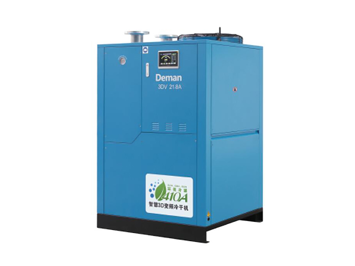 德曼3D智慧变频超级冷干机使用先进的变频技术,压缩机和主控器间信息互通,变频模块改变压缩机电流和频率来控制压缩机功率,可在处理低流量时降低运行频率,达到整体节能30%以上的效果;同时配合精准控制的电子膨胀阀和热气旁通阀,控制压力露点的持续稳定,达到更好除湿效果的同时不会冰堵。使用液位感应式排水器,无压缩空气损失,不易堵塞,更加稳定。同时冷干机也支持“德曼云智控”,无论何时无论何处,始终给您更加洁净的压缩空气。